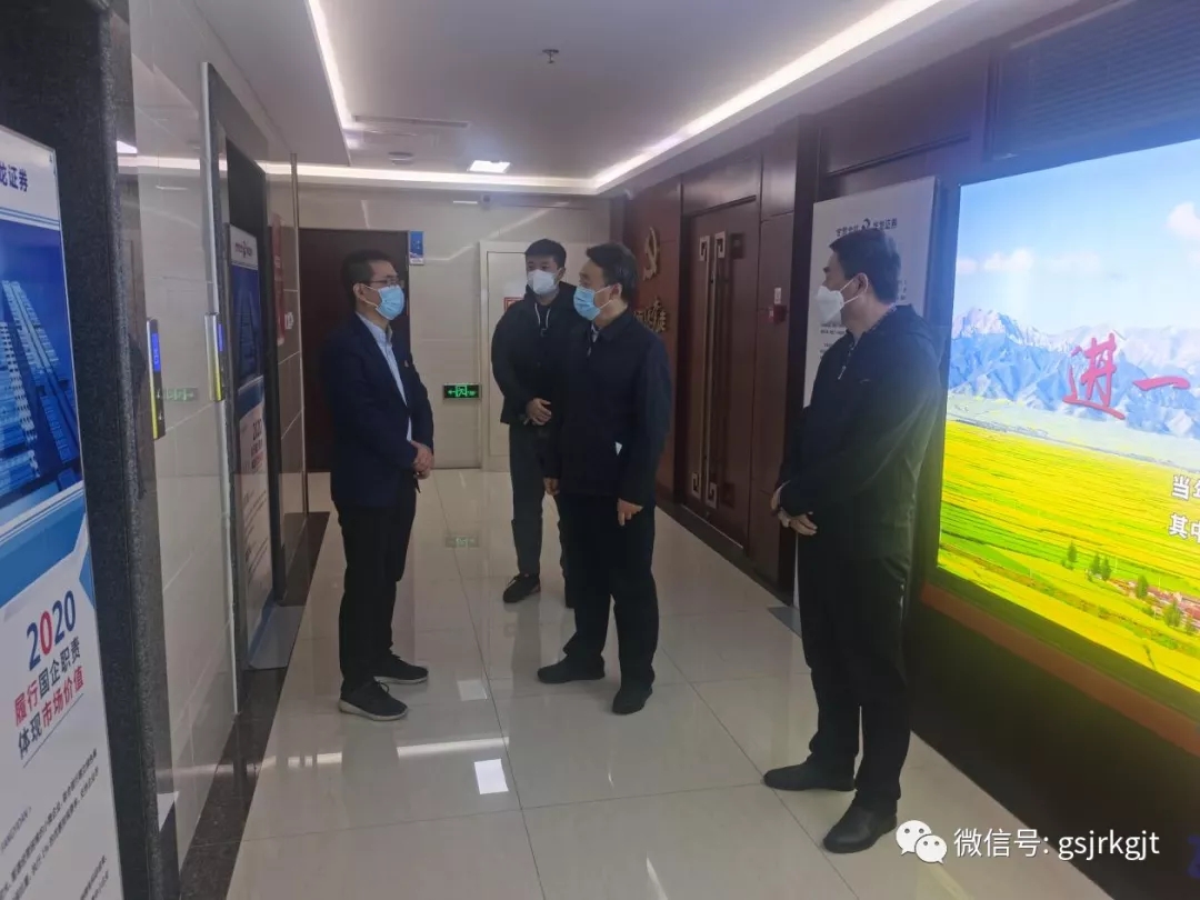 祁建邦一行采取“四不兩直”的方式,先后來到華龍證券東崗西路營業(yè)部、甘肅金控?fù)?dān)保集團(tuán)、隴原融資租賃公司和甘肅股權(quán)交易中心,看望慰問值班值守員工,詳細(xì)了解各單位疫情防控值班值守安排、防疫舉措和業(yè)務(wù)發(fā)展、服務(wù)保障有關(guān)情況。他強(qiáng)調(diào),一要切實(shí)提高政治站位,各單位主要負(fù)責(zé)人要扛牢疫情防控“第一責(zé)任人”責(zé)任,履好職盡好責(zé),不懈怠不缺位,看好自己的門,管好自己的人,層層壓實(shí)責(zé)任,確保集團(tuán)防疫工作高效開展。二要充分認(rèn)識當(dāng)前疫情形勢的復(fù)雜性、不確定性,時(shí)刻繃緊疫情防控這根弦,堅(jiān)決貫徹落實(shí)屬地疫情防控各項(xiàng)規(guī)定和措施要求以及集團(tuán)工作部署,扎緊筑牢內(nèi)部防線,嚴(yán)把人員和場所關(guān)口,做到底數(shù)清、情況明,隨時(shí)做好緊急情況應(yīng)急處置準(zhǔn)備,確保安全無憂。三要充分發(fā)揮自身金融優(yōu)勢,大力推動業(yè)務(wù)發(fā)展,靈活運(yùn)用各項(xiàng)金融手段,協(xié)同聯(lián)動,全力支持疫情防控和經(jīng)濟(jì)社會發(fā)展,持續(xù)發(fā)揚(yáng)開拓創(chuàng)新的優(yōu)良作風(fēng)和攻堅(jiān)克難的擔(dān)當(dāng)精神,為我省打贏疫情防控遭遇戰(zhàn)、阻擊戰(zhàn)貢獻(xiàn)金控力量。