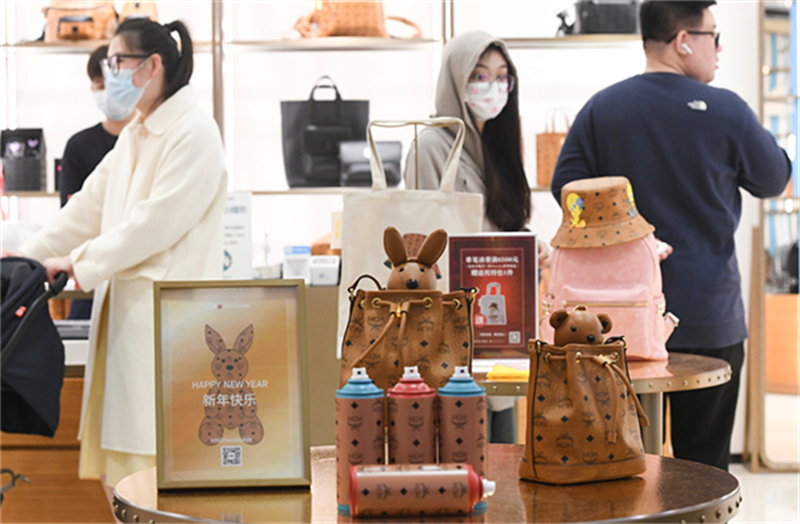 1月25日,游客在中免集團(tuán)海口日月廣場免稅店選購免稅商品。新華社記者 楊冠宇 攝