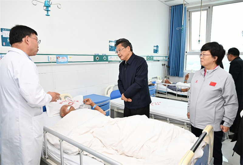 任振鶴還來到隴西縣第二人民醫院,看望這里收治的受傷群眾,了解救治情況。他強調,要精心開展后續治療工作,及時做好情緒疏導和心理撫慰,爭取讓傷員早日康復回家。