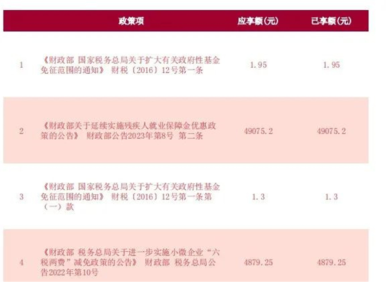 為深入推進(jìn)“三抓三促”行動(dòng),甘肅征信圍繞“公司要發(fā)展,我該謀什么”主要任務(wù),堅(jiān)持高標(biāo)準(zhǔn)、嚴(yán)要求開展財(cái)稅工作,全面梳理2023年度稅費(fèi)支持政策,認(rèn)真研讀《財(cái)政部 稅務(wù)總局關(guān)于進(jìn)一步實(shí)施小微企業(yè)“六稅兩費(fèi)”減免政策的公告》《財(cái)政部 國(guó)家稅務(wù)總局關(guān)于擴(kuò)大有關(guān)政府性基金免征范圍的通知》《財(cái)政部稅務(wù)總局關(guān)于明確生活性服務(wù)業(yè)增值稅加計(jì)抵減政策的公告》(2019年第87號(hào) )等相關(guān)政策,支持公司高質(zhì)量發(fā)展。截止2023年12月,公司已享受稅收減免53957.7元。
