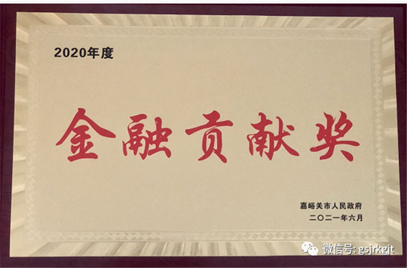 8月11日,金控嘉峪關擔保榮獲嘉峪關市政府全市金融助力高質量發展暨政金企擔融資對接會上授予的“2020年度金融貢獻獎”,以表彰金控嘉峪關擔保在2020年度服務中小微企業等方面取得的突出貢獻。